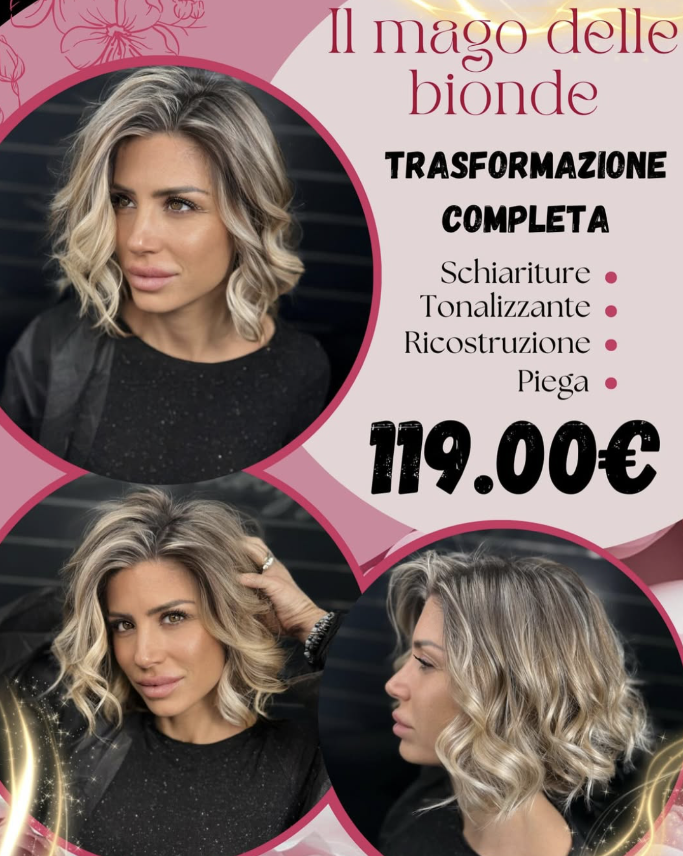 Sono specializzato nei capelli biondi, mia grande passione e firma distintiva, ma nel corso degli anni ho perfezionato le migliori tecniche per trattare ogni tipo di capello: dal castano profondo al ramato acceso, dal liscio impeccabile al riccio naturale.